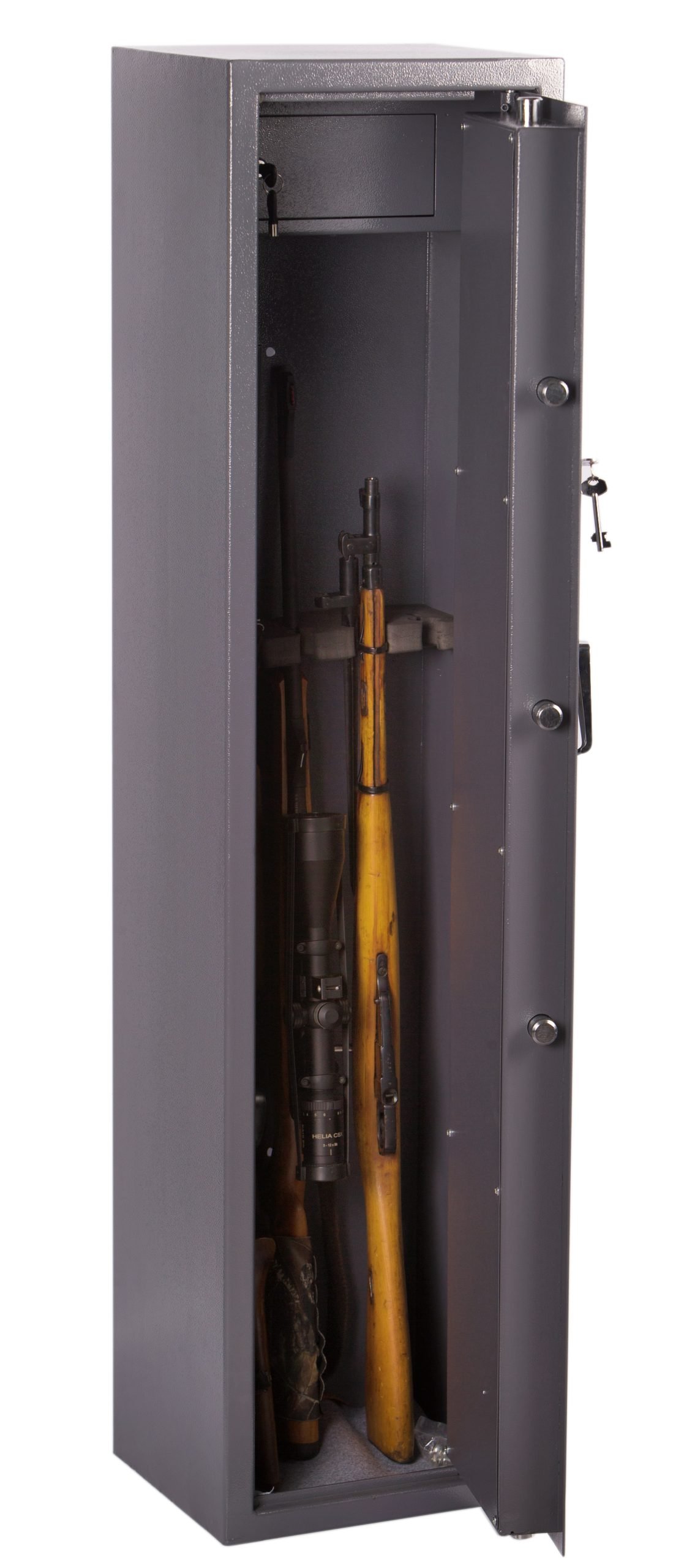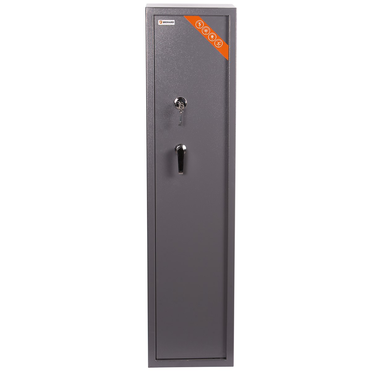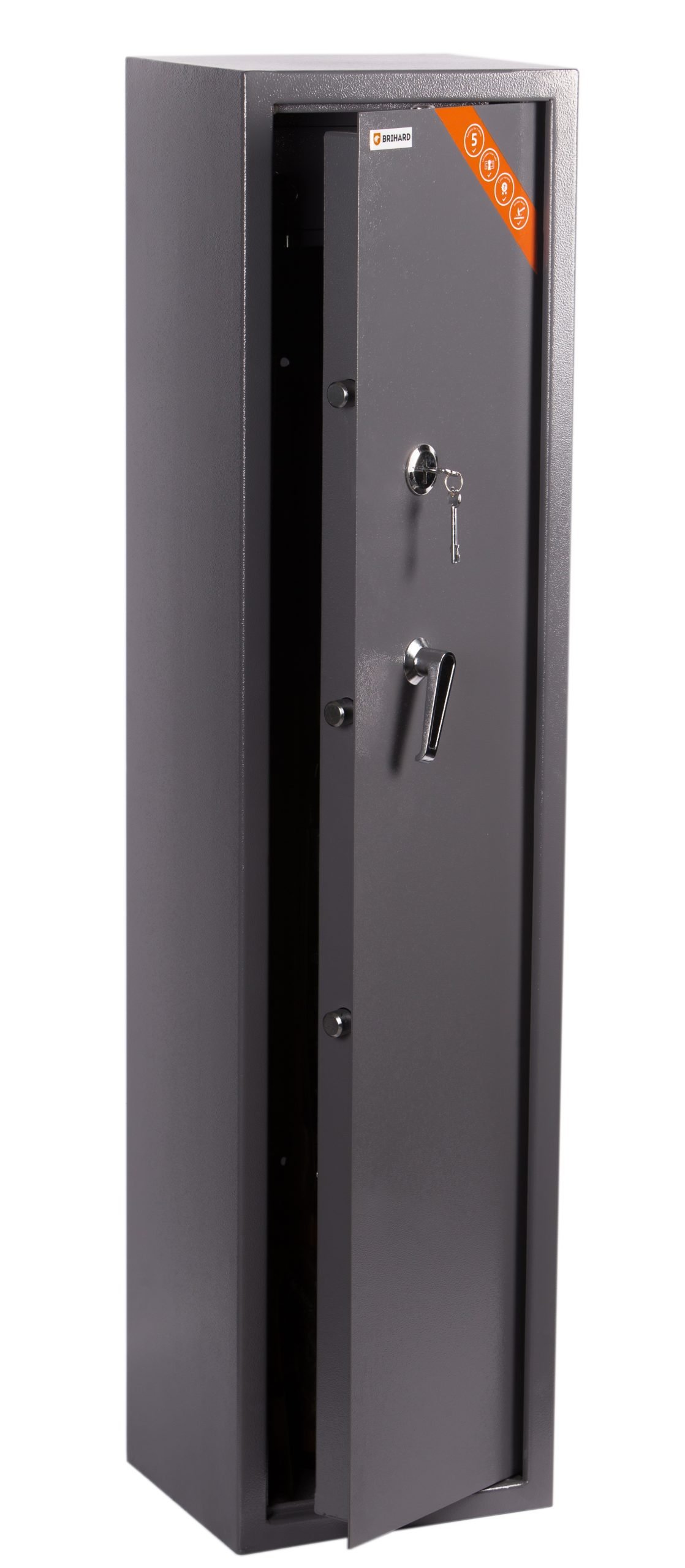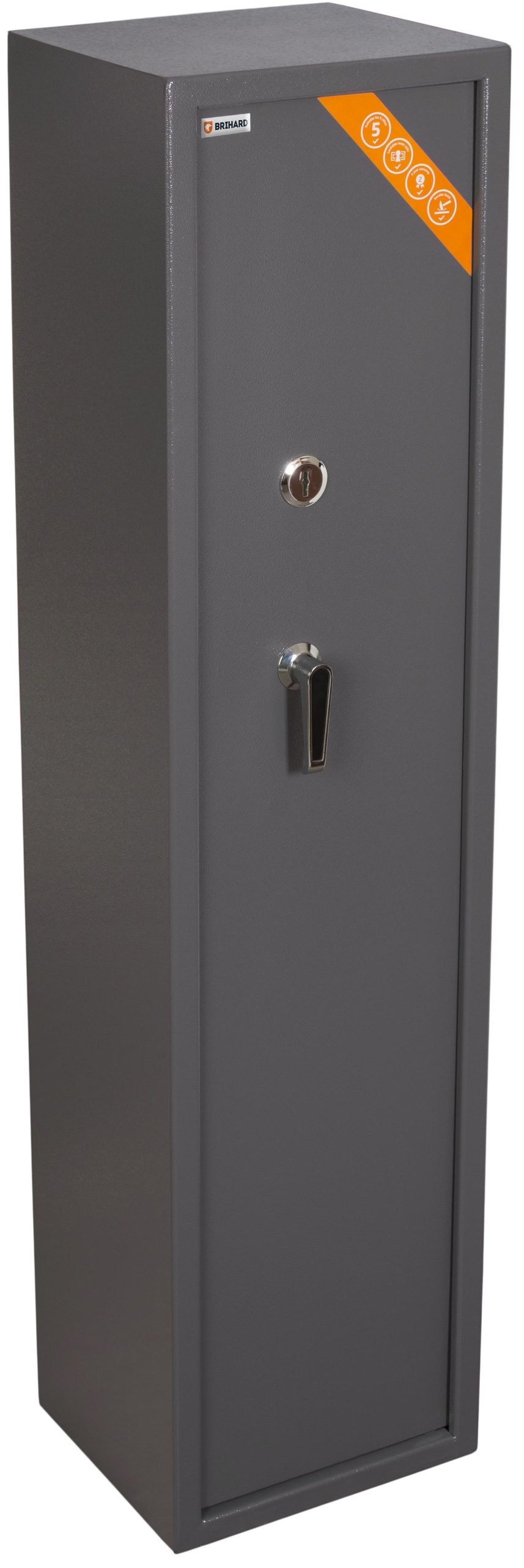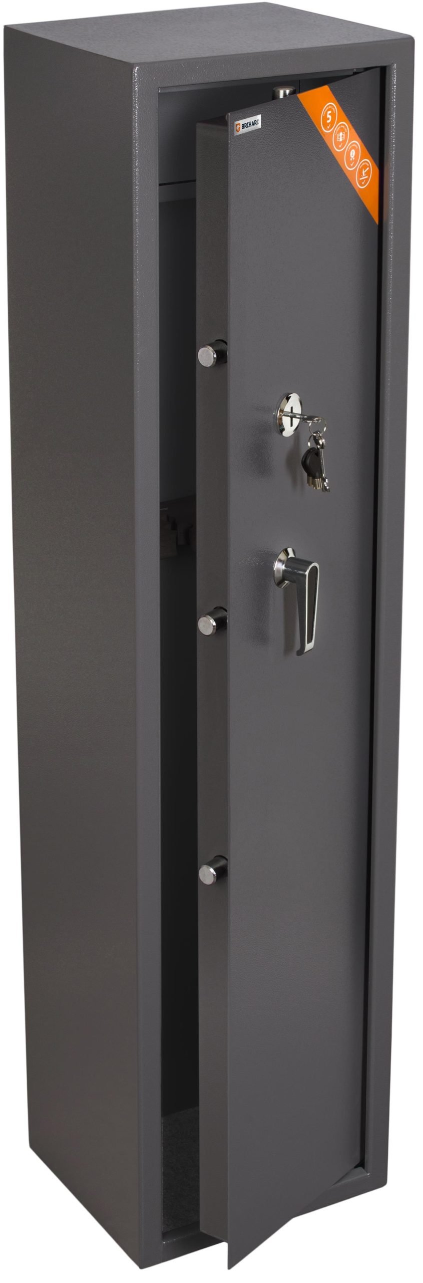 Brihard Hunter 5 K – saugus ir patikimas seifas, skirtas iki 5 šautuvų laikymui. Atitinka Lietuvos Respublikos reikalavimus ginklų saugojimui. Tvirtas korpusas, galingi skląsčiai ir vidinis skyrelis užtikrina patikimą saugumą.