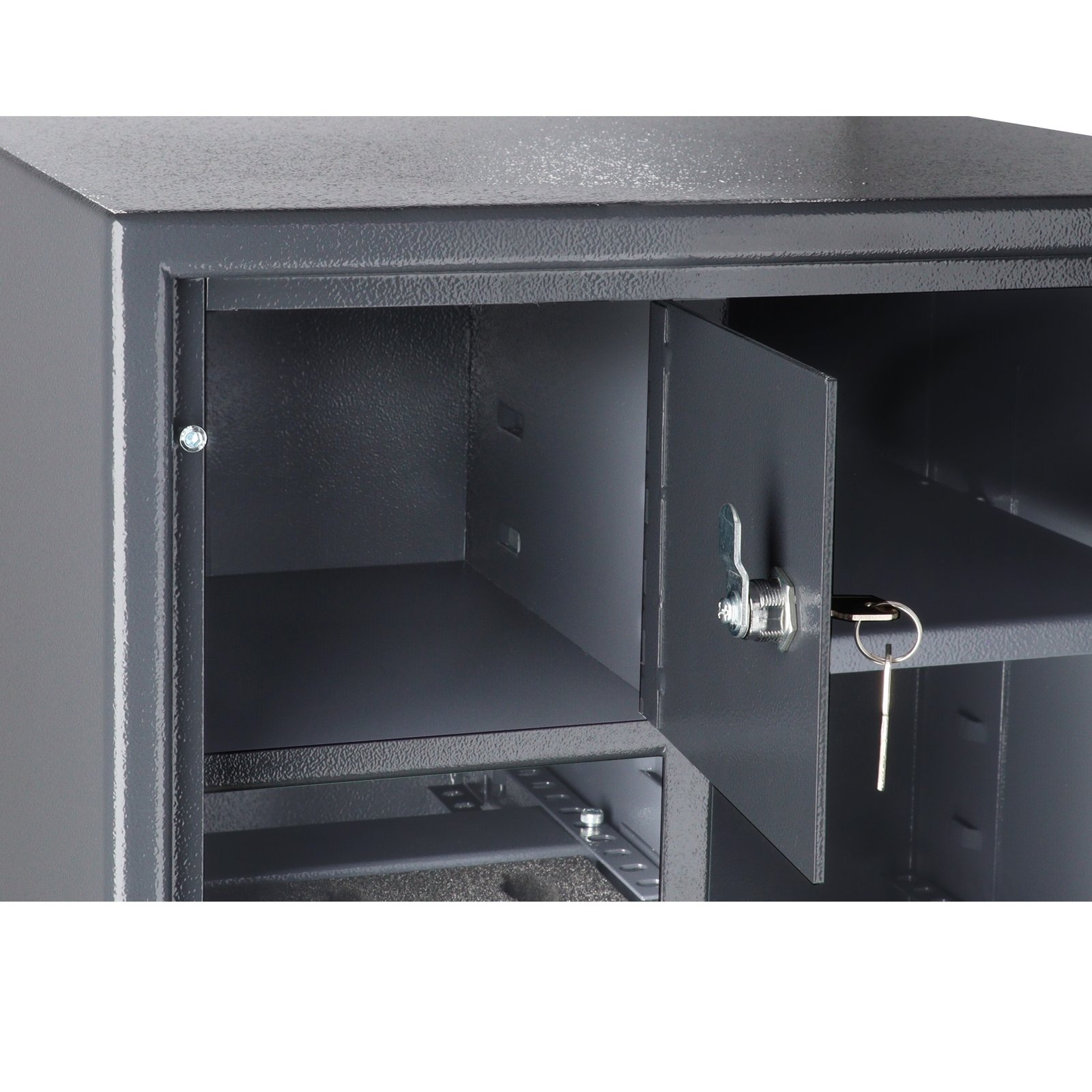 Vidinis rakinamas skyrelis (195 mm aukščio) su cilindrine spyna ir 2 raktais.
