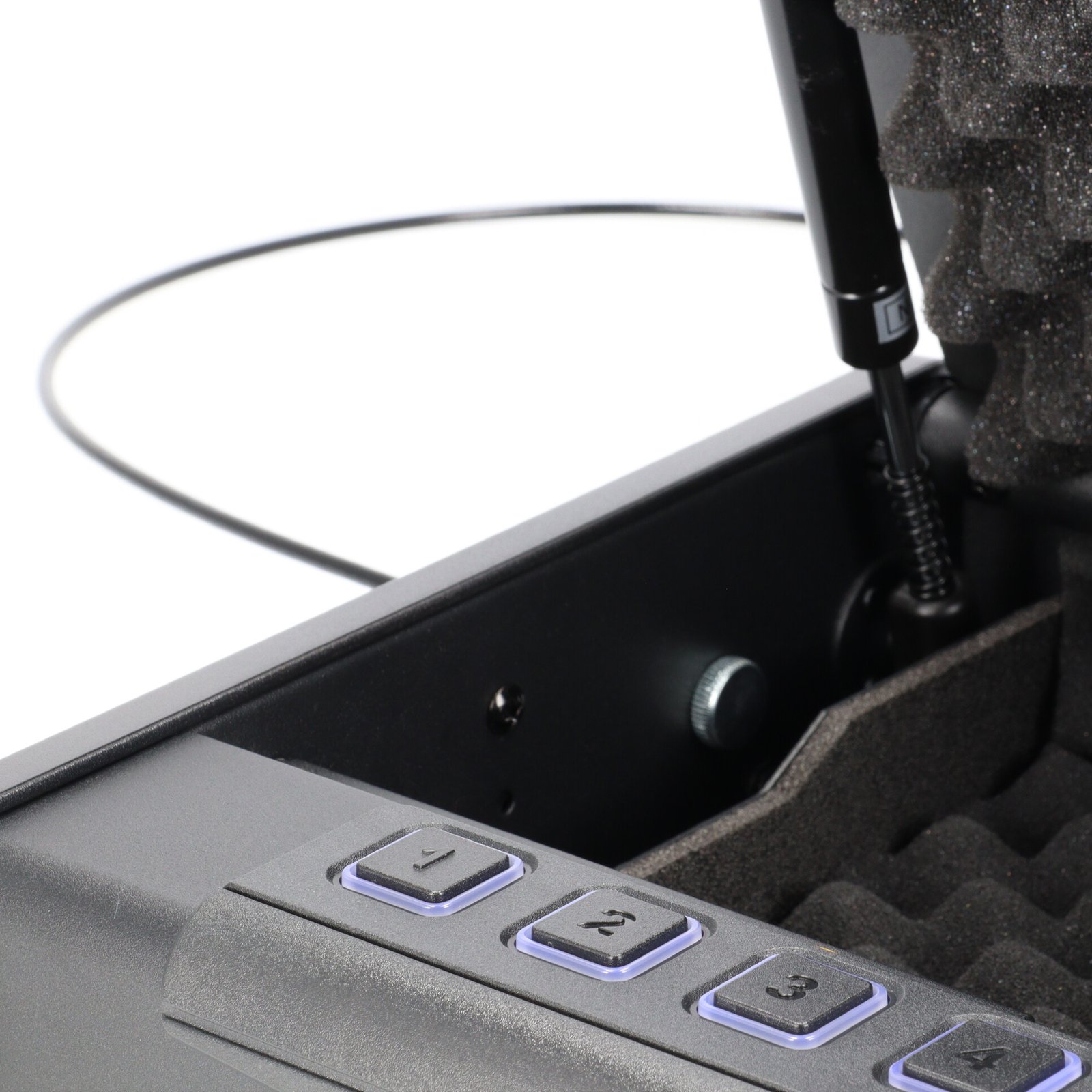 3 atrakinimo būdai: biometrinis piršto atspaudas (galima užprogramuoti iki 20 vartotojų), kodinė spyna (4–6 skaičių PIN), avarinis raktas.