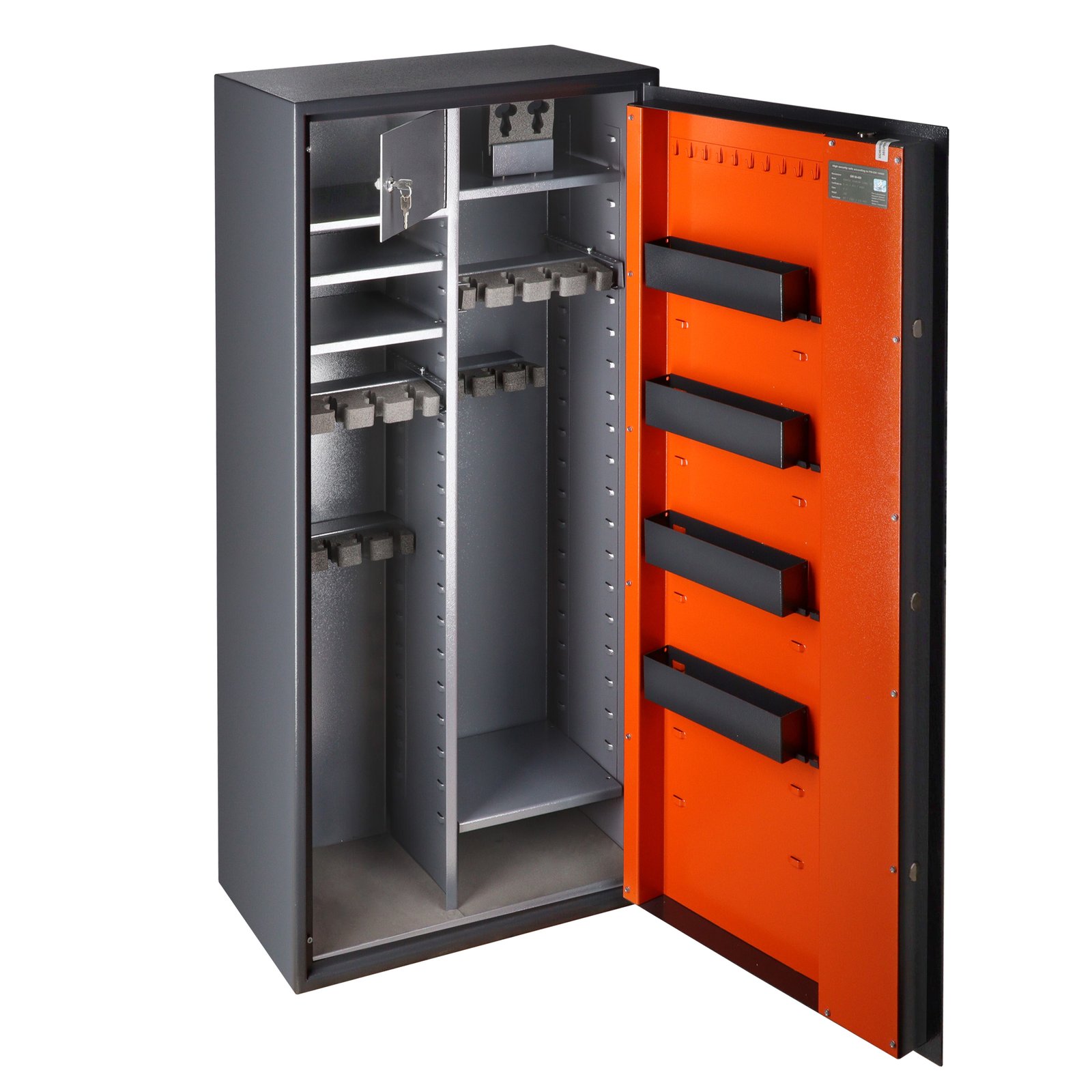 Brihard Hunter Premium Combi 18 K – sertifikuotas (EN 14450 – S1 klasė) seifas, skirtas ilgųjų ir trumpųjų ginklų bei amunicijos laikymui. Puikus pasirinkimas medžiotojams ir sportinių ginklų savininkams, ieškantiems saugaus ir talpaus sprendimo.