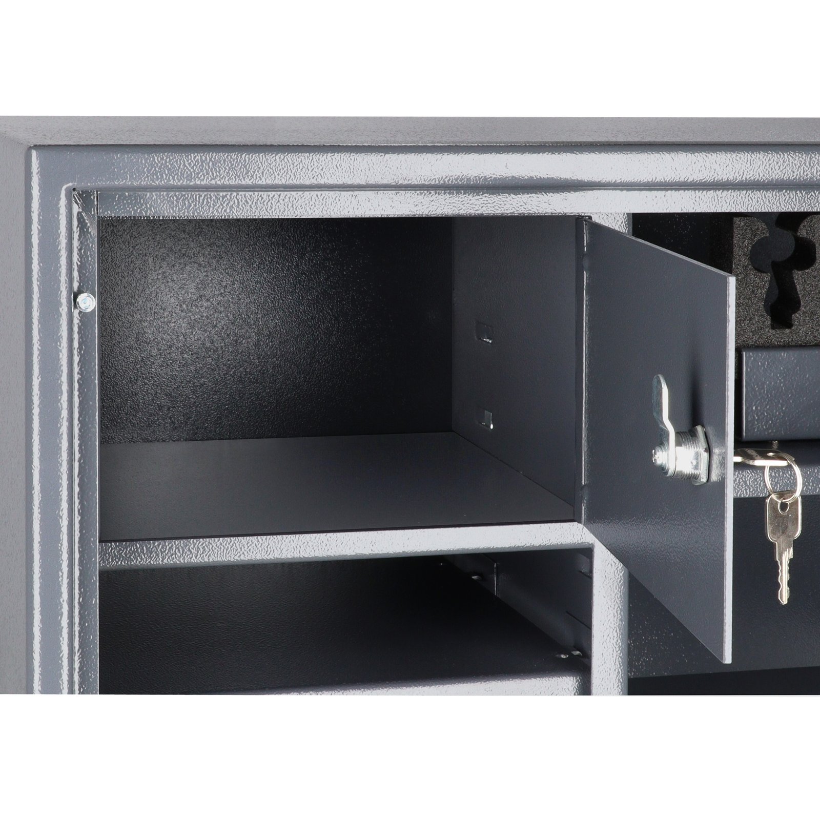 Vidinis rakinamas skyrelis (195 mm aukščio) su cilindrine spyna ir 2 raktais.
