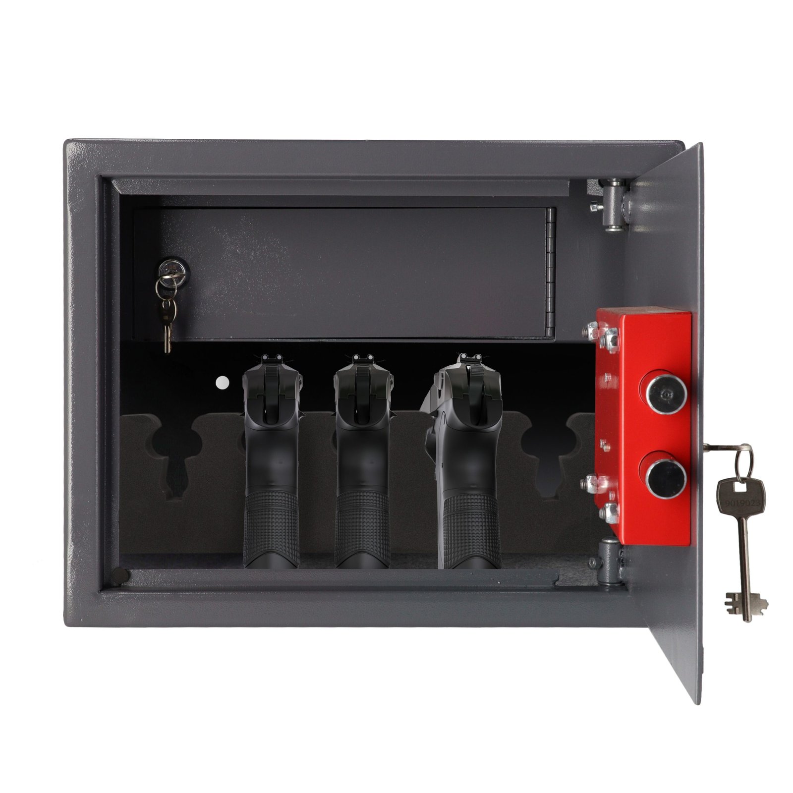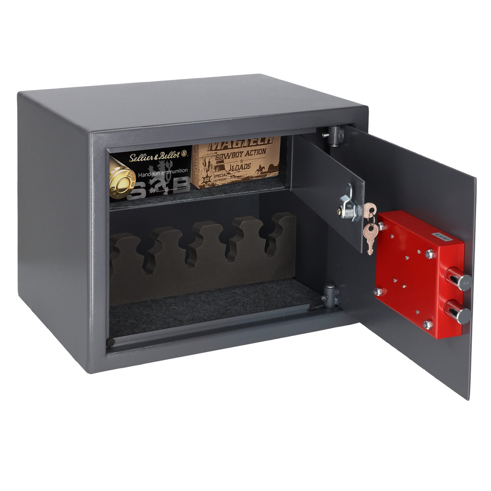 Brihard Pistol & Ammo XL K – patikimas ir talpus seifas, skirtas iki 5 pistoletų bei amunicijos laikymui. Atitinka LR reikalavimus šaunamųjų ginklų saugojimui.