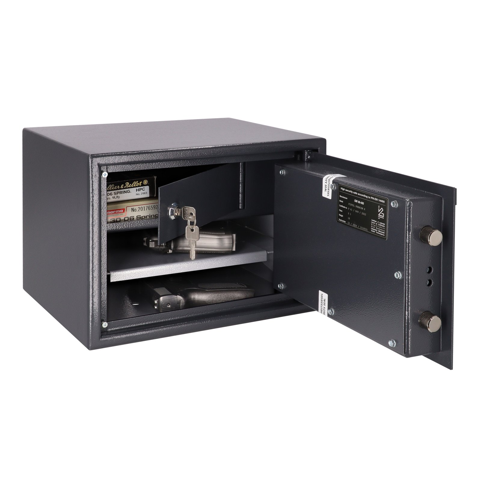 Brihard Pistol Premium K – sertifikuotas (EN 14450 – S1 klasė) ginklų seifas, skirtas iki 2 trumpųjų ginklų ir amunicijos laikymui. Patikimas sprendimas saugiam laikymui namuose ar biure.