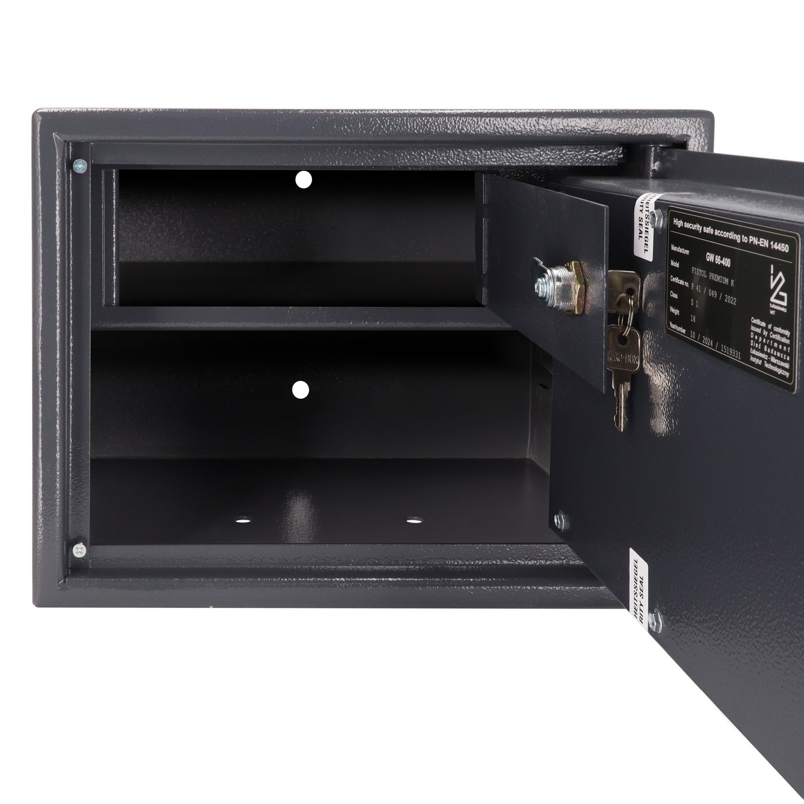 Brihard Pistol Premium K – patikimas, sertifikuotas seifas, užtikrinantis aukštą saugumo lygį ir patogų vidaus išplanavimą, pritaikytas teisėtam trumpųjų ginklų saugojimui.