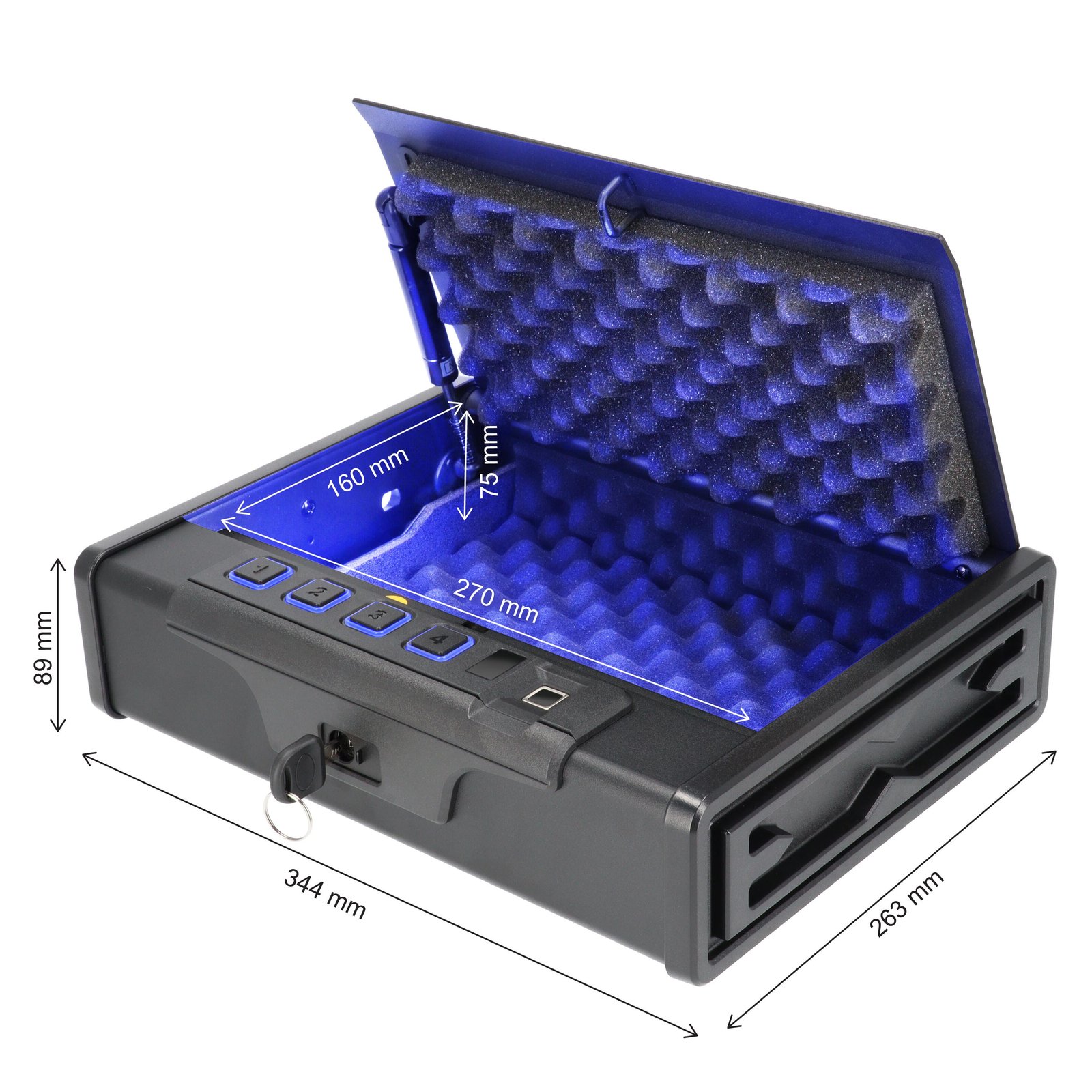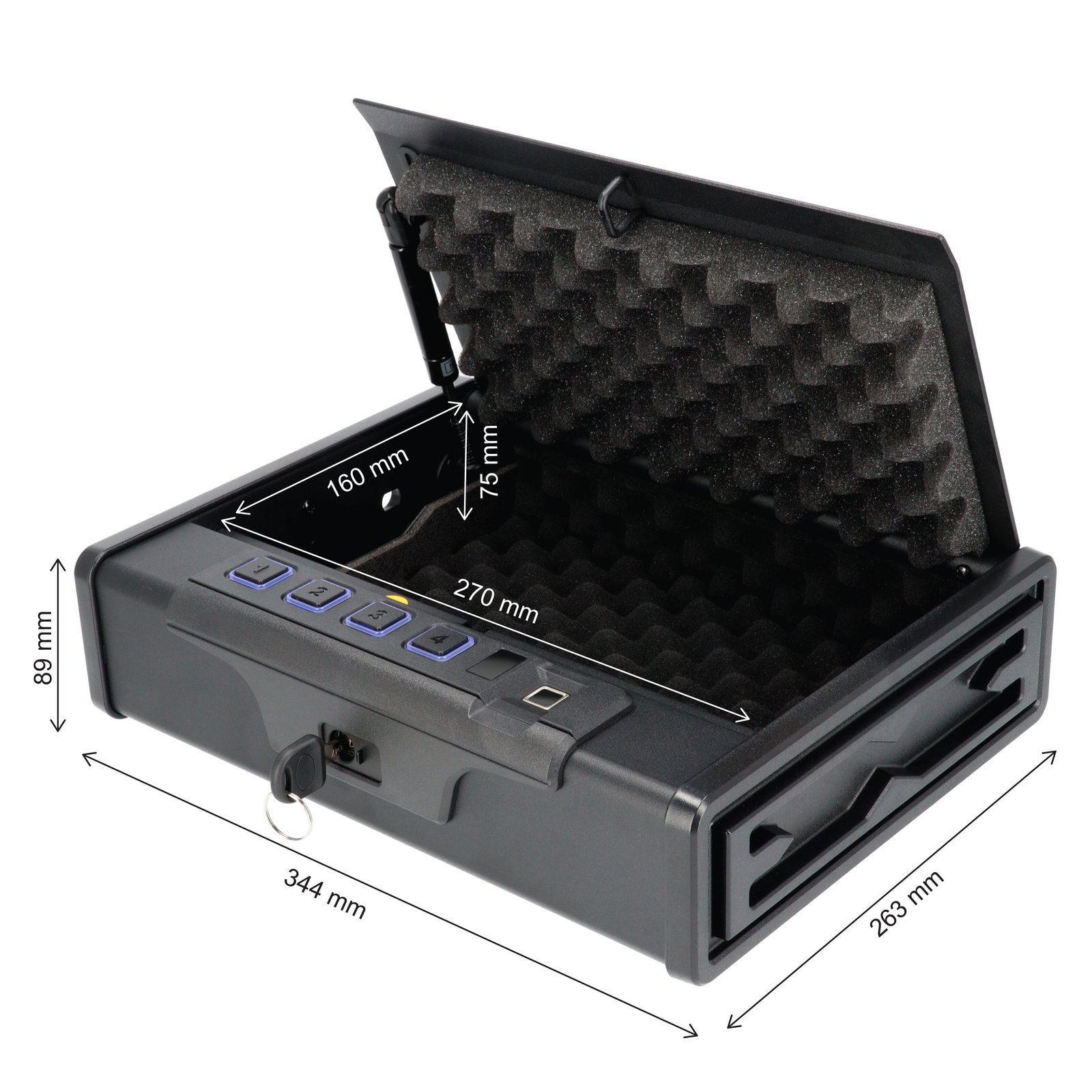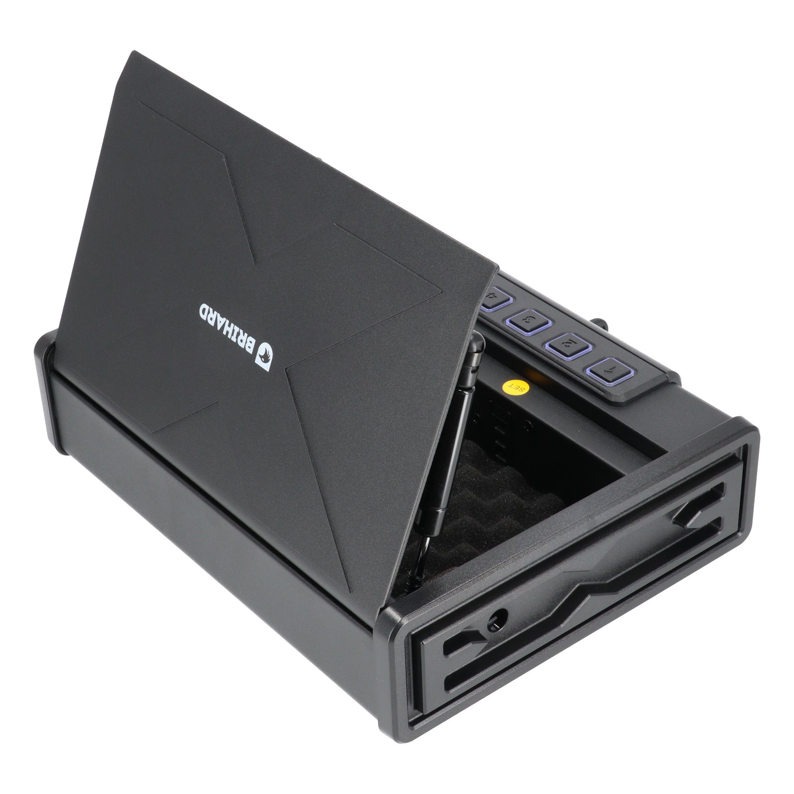 Brihard Portable Biometric – kompaktiškas ir patikimas seifas, skirtas 2 pistoletų, pinigų, pasų, papuošalų ar kitų vertybių laikymui. Dėl nedidelio dydžio idealiai tinka kelionėms, naudojimui automobilyje, biure ar viešbutyje.